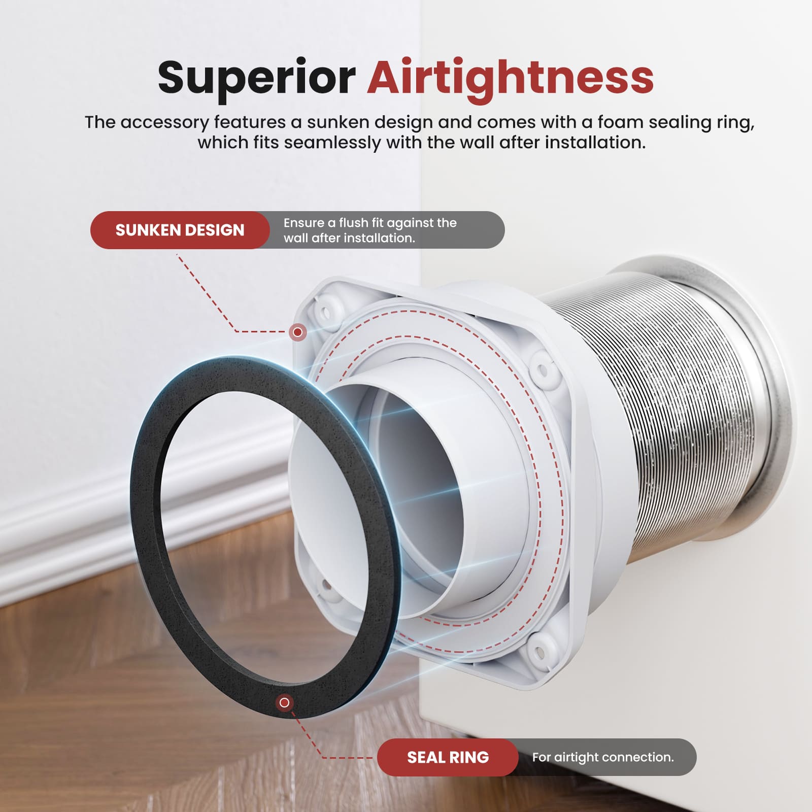 • 【Airtight Connection】This connector has a built-in seal ring and a sunken design on the wall assembly, ensure it fits perfectly when mounted to the wall vent for superior air tightness.