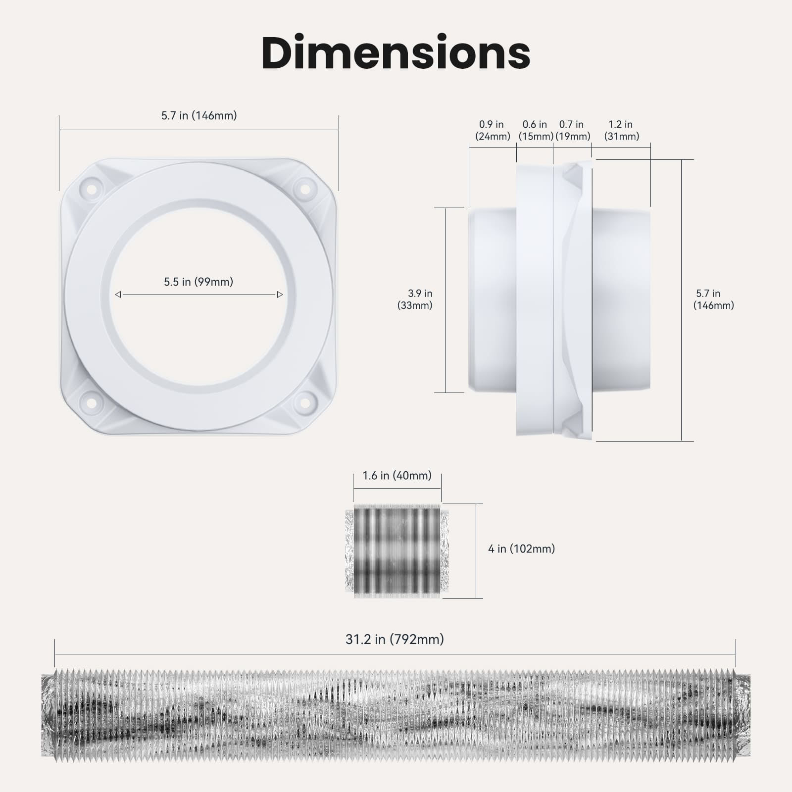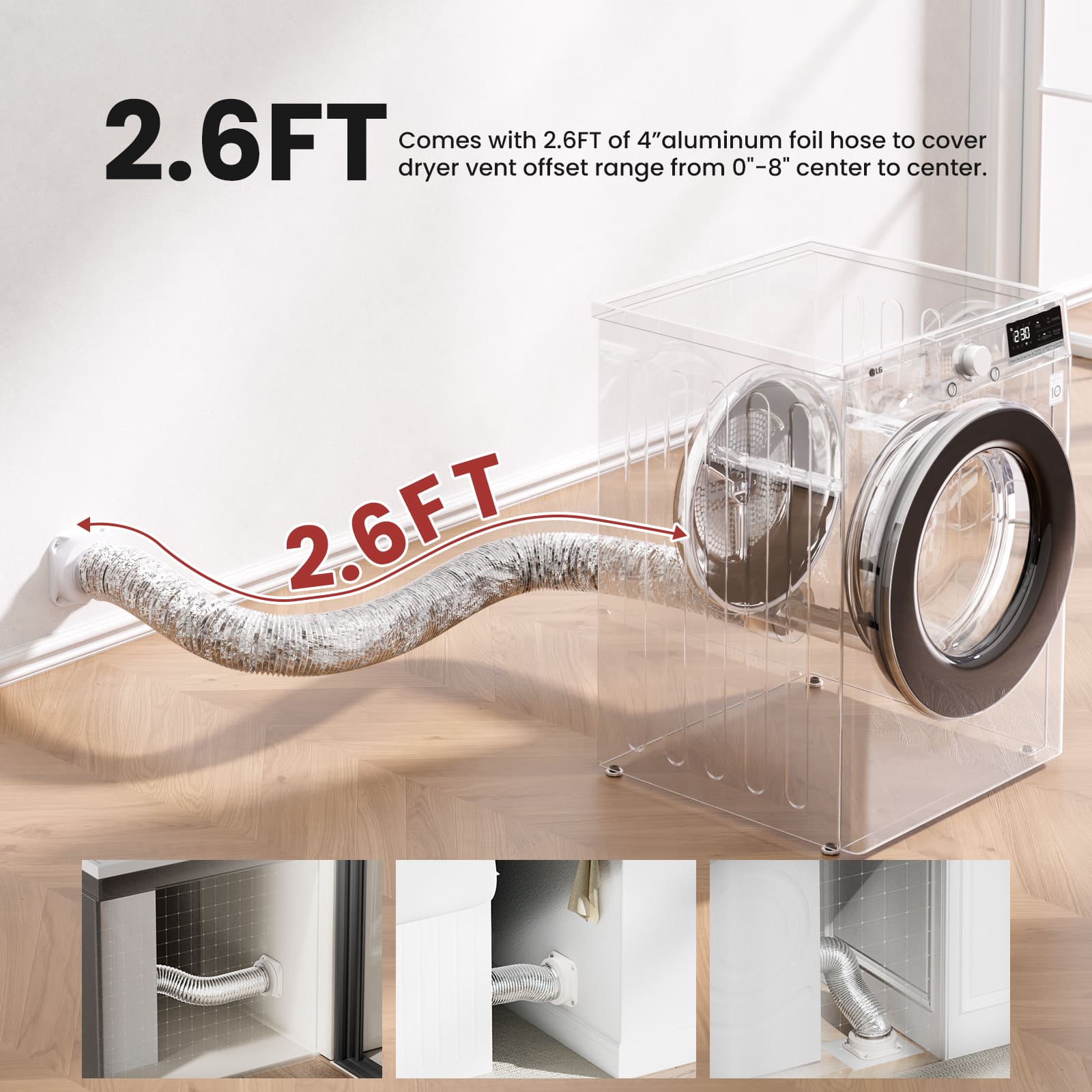 • 【Cover Larger Area】The dryer vent adapter comes with 2.6ft of 4 inch aluminum foil hose to meet your needs for extensive coverage.
