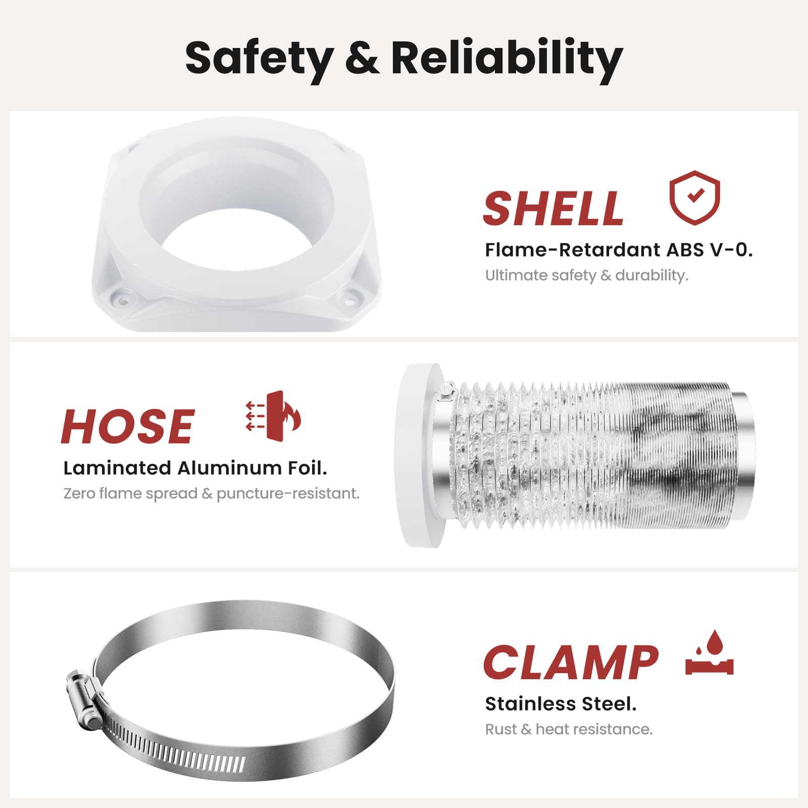• 【Safety & Reliability】We prioritise product quality and user safety. JEEVONY magnetic dryer vent coupling features aluminium alloy shell, zero flame spread aluminium foil hose, and stainless steel hose clamps to ensure durability and reliability.